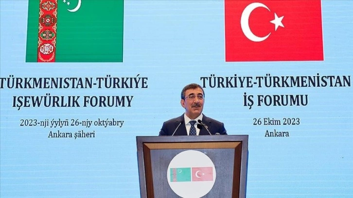 Cumhurbaşkanı Yardımcısı Cevdet Yılmaz, TOBB ve DEİK işbirliğiyle Türkmenistan Ticaret ve Sanayi Odası'nda düzenlenen Türkiye-Türkmenistan İş Forumu'na katıldı.