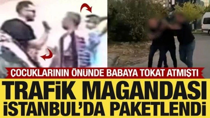 Araçtan inen sürücü, çocuklarının yanında duran babayla kısa süreli bir tartışmaya girdi. Tartışmanın büyümesi üzerine kontrolünü kaybeden sürücü, babanın boğazını tuttuktan sonra çocuklarının gözü önünde tokat attı. Bu anlar güvenlik kamerasına da yansıdı.