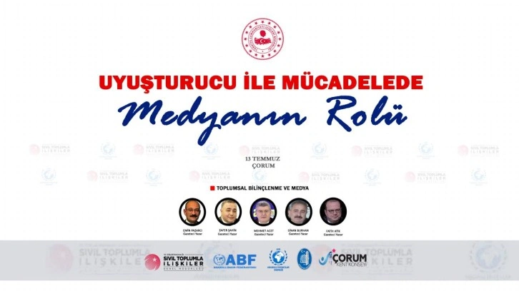 Uyuşturucu ile mücadeleye dikkat çekmek, toplumsal farkındalık oluşturmak ve medyanın sorumluluklarının anlatılacağı, “Uyuşturucu ile mücadelede medyanın rolü” panelinde konuşmacı olarak Gazeteci yazarlar Zafer Şahin, Emin Pazarcı, Fatih Atik, Mehmet Acet ve Sinan Burhan yer alacak.