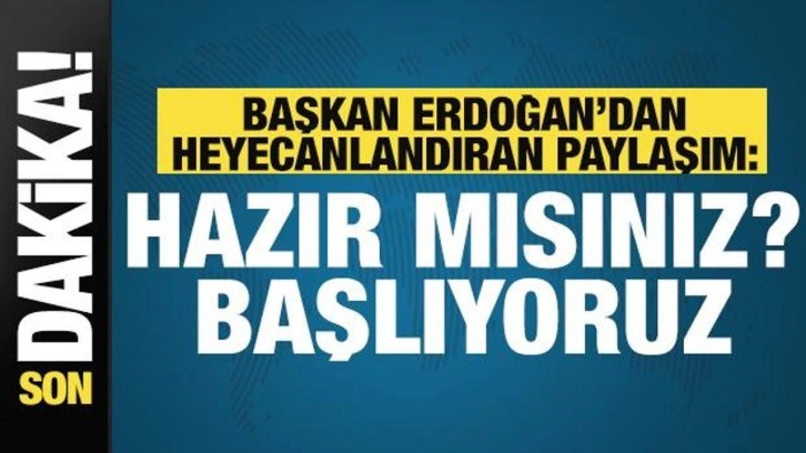 Cumhurbaşkanı Erdoğan'ın "Başlıyoruz" etiketli paylaşımında, Türk bayrağı, dünya ve roket emojileri de yer aldı.