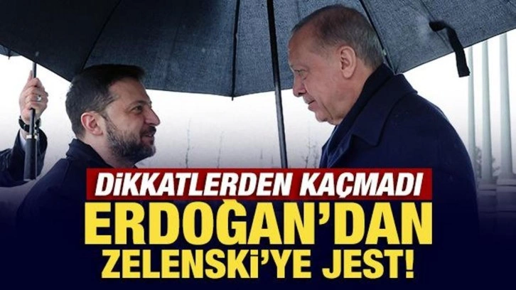 Özellikle Erdoğan'ın karşılama sırasında Zelenski ile şemsiyesini paylaşması fotoğraf karelerine yansıdı. O detay sosyal medyada da kullanıcıların dikkatini çekti.