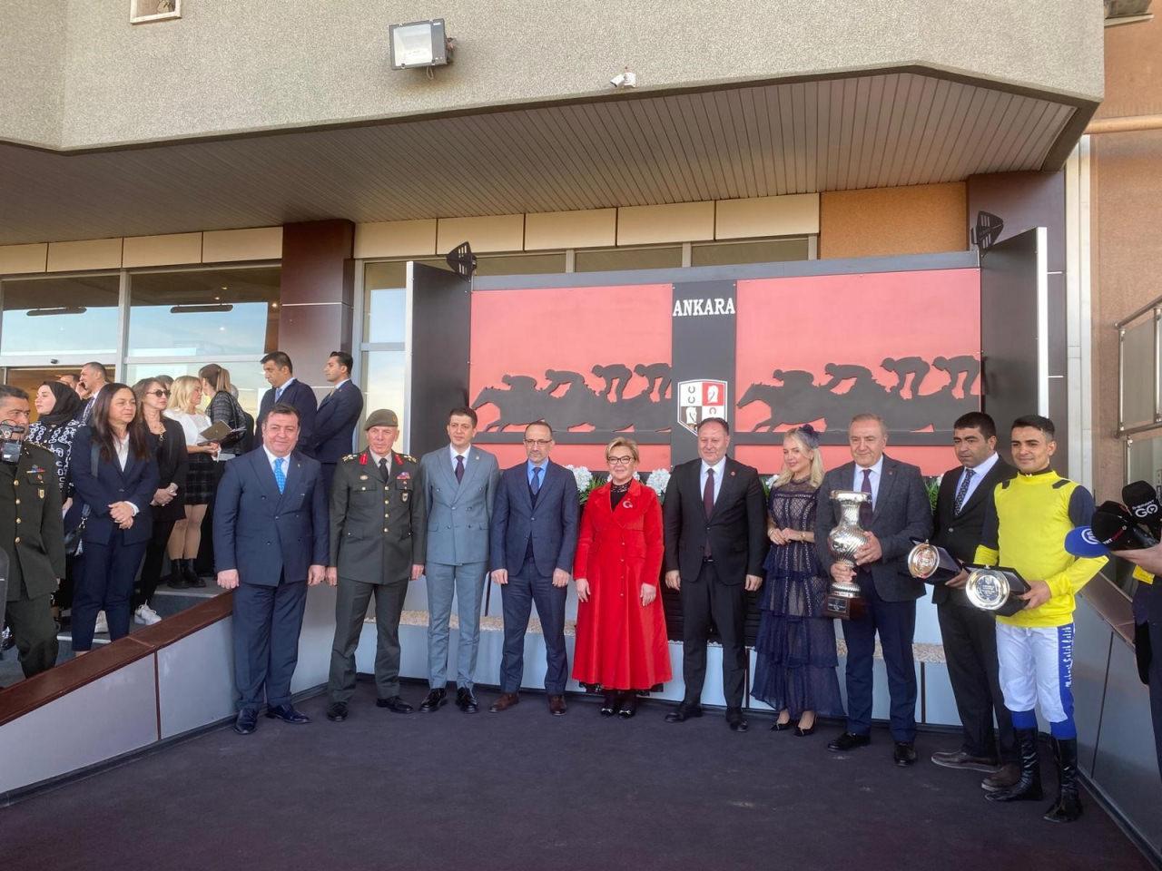 Cumhuriyet Koşusu'nun galibi "Gökırmak"ın jokeyi Mehmet Salih Çelik ve antrenörü Olcay Özel'e plaketlerini, KKTC Cumhuriyet Meclisi Başkanı Ziya Öztürkler ile 4'üncü Kolordu ve Ankara Garnizon Komutanı Korgeneral Ahmet Kurumahmut takdim etti.