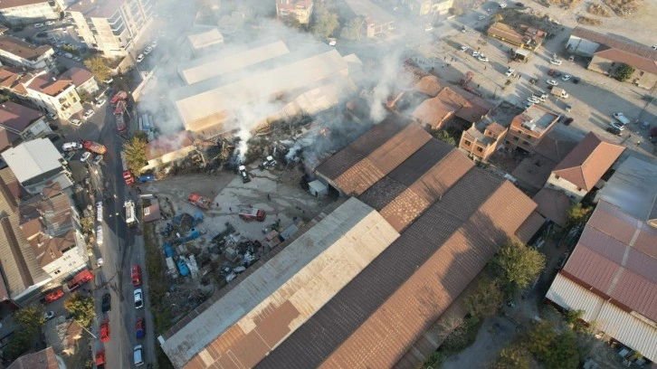 Ekiplerin söndürme ve soğutma çalışmaları dron ile havadan görüntülendi.