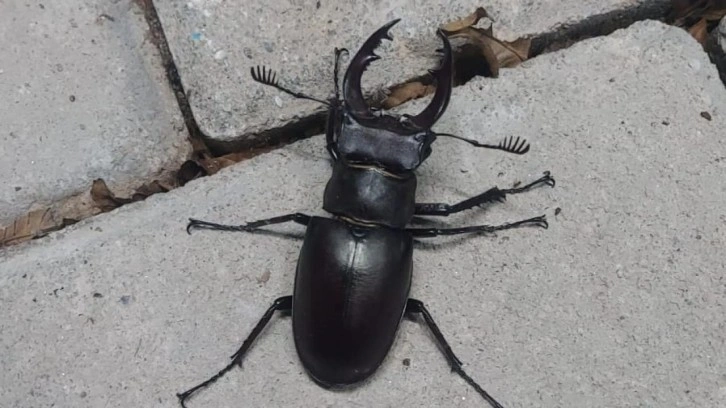 Hayvanı cep telefonu ile çeken vatandaş, yaptığı incelemede böceğin, nesli tükenme tehlikesi altında bulunan geyik böceği (Lucanus Cervus) olduğunu öğrendi.