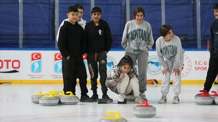Şehir merkezindeki Olimpik Buz Sporları Salonunda antrenör Hayrettin Can Karaciğer yönetiminde curling öğrenen çocuklar, tecrübe kazandıktan sonra takım halinde müsabakalara katılacak.