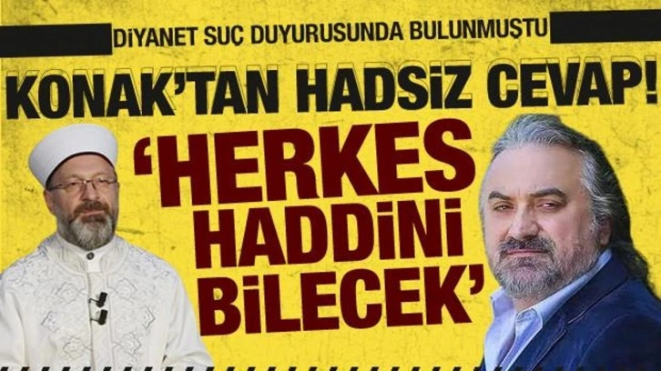 Diyanet'ten yapılan açıklamada, Konak'ın sosyal medya hesabından yaptığı paylaşımda, "İslam dininin inançları, ibadet ve ahlak esasları ile ilgili işleri yürütmek, din konusunda toplumu aydınlatmak ve ibadet yerlerini yönetmek" görevinin kanunla kendisine tevdi edilen Diyanet İşleri Başkanlığı ve Başkanlığın en üst temsilcisi Ali Erbaş'ı rencide ederek kişilik haklarını ihlal ettiği belirtildi.