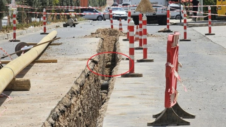 Doğal gaz hattı döşenmesi için iş makinesi ile yapılan kazı çalışmasında işçiler, el yapımı patlayıcı düzeneği fark etti.