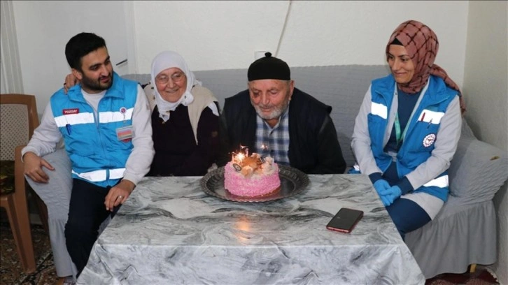 Atmaca'nın eşi Besi Atmaca da sağlık personelinin kontrollerini yaptığını ve eşinin doğum gününü kutladığını ifade ederek, "Sürekli geliyorlar, bize yaşlı diye önem verdiler. İlacımıza kadar yazıyorlar ve gönderiyorlar, çok mutlu oluyoruz." dedi.