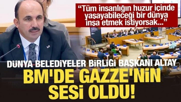 Konuşmasına, “Daha kapsayıcı ve çok taraflı bir sistem çağrımızın temelinde gezegenimizin sorunlarını çözmek için ortak hareket etmek ve birlik olmak yer alıyor. Bugün savunduğumuz çok taraflı sistem vatandaşlarımızın seslerinin daha gür yükseldiği ve anlaşıldığı sistemdir” diye devam eden Dünya Belediyeler Birliği Başkanı Altay, “Yerel ve bölgesel yönetimler olarak halkın güveninin koruyucularıyız. Yüklendiğimiz yükümlülüklerle eşitliği, kalkınmayı, barışı, adaleti, birlik ve beraberliği sağlamak konusunda oldukça önemli bir noktadayız. Bu anlamda dünyanın birçok noktasında gerçekleşen savaş ve acılara son vermek için de el ele vermeliyiz. Bizler bugün burada vatandaşlarımıza daha yaşanabilir bir dünya sunmak için çalışırken maalesef Gazze başta olmak üzere dünyanın birçok noktasında kan ve gözyaşı hüküm sürmektedir. Özellikle İsrail rejiminin masum Gazzelilere yönelik sürdürdüğü soykırım bugün kalbi barış ve kardeşlik için atan tüm insanlığı derinden yaralamaktadır. Uzun yıllardır sistematik olarak sürdürülen yaklaşık bir yıldır da çocuk, yaşlı demeden masum on binlerce Filistinli’nin hayatına mal olan bu soykırım karşısında sessiz kalmak ne bugün inşa etmeye çalıştığımız vizyona ne de insanlık ahlakına uygun değildir. Son olarak 26 yaşındaki Türk ve Amerikan vatandaşı Ayşenur Ezgi’nin İsrail işgali altındaki Batı Şeria’da İsrailli yerleşimcilere karşı katıldığı protestoda şehit edilmesi İsrail’in ulaştığı vahşetin boyutunu bir kez daha gözler önüne sermektedir. Bu katillerden bunun hesabını mutlaka sormak gerekiyor. Unutmayalım ki sessiz kalmak zalime imkan vermek, zulme fırsat vermektir. Tüm insanlığın huzur içinde yaşayabileceği bir dünya inşa etmek istiyorsak bugün bu katliama ses çıkarmalı ve suçluların adalet önünde hesap vermeleri için el ele vermeliyiz” ifadelerini kullandı.
