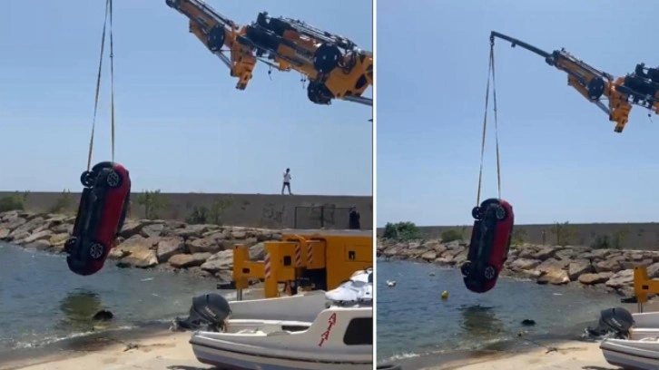 Otomobil, bir süre sonra hareket edip denize düştü.Çevredekilerin uyarısı üzerine aracının denize düştüğünü öğrenen sürücü, durumu jandarma ve itfaiye ekiplerine bildirdi.