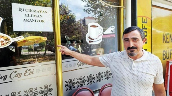 Karasu'nun İncilli Mahallesi 618.Sokak üzerinde çay evi işleten Metin Ülker, çok sayıda eleman değiştirdiğini ve durumdan şikayetçi olduğunu söyledi. İşe aldığı her elemanın bir bahane uydurduğunu ifade eden Ülker, çareyi dikkat çeken bir ilanı cama asmakta buldu.