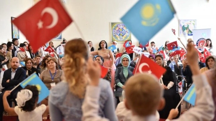 Merkezde 3-15 yaş aralığında Kazak, Özbek ve Rus çocuklardan oluşan 76 öğrencinin çalışmaları hakkında yetkililerden bilgi alan Emine Erdoğan, derslikleri gezerek çocuklara hediyeler verdi.