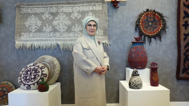 "Motiflerin Dili" projesi kapsamında İstanbul Beylerbeyi Sabancı Olgunlaşma Enstitüsü atölyelerinde hazırlanan koleksiyonlardan seçilen eserlerin, "Klasik Sanat Motifleri" ve "Anadolu Halk Motifleri" başlıklarıyla sunulduğu sergiyi gezen Emine Erdoğan, Türk ve Macar kültürlerine ait el sanatlarının ve motiflerin yer aldığı eserleri inceledi.