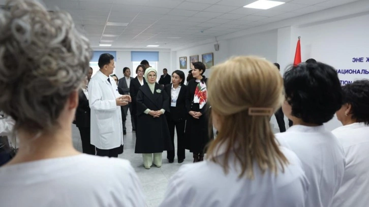 Cumhurbaşkanı Recep Tayyip Erdoğan'ın eşi Emine Erdoğan ile Kırgızistan Cumhurbaşkanı Sadır Caparov'un eşi Aygül Caparova, Kırgızistan'dan yılda 35 bin kadın ve çocuğun tedavi gördüğü, 150 binden fazla çocuğa sağlık danışmanlık hizmeti veren başkent Bişkek'teki Ulusal Anne ve Çocuk Koruma Merkezi'ni ziyaret etti.