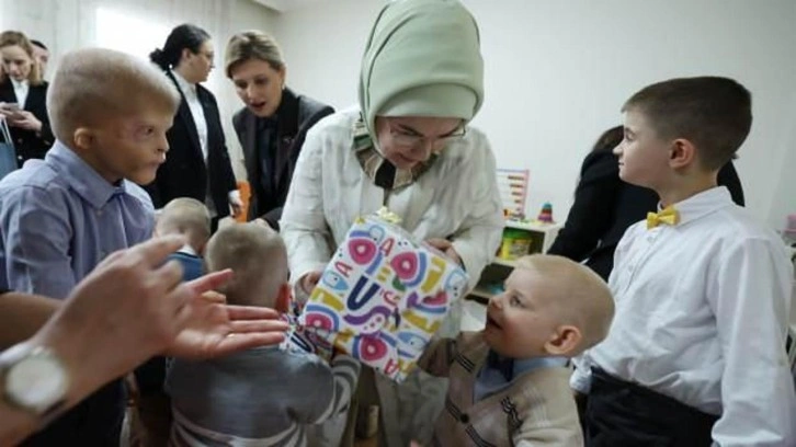 "İnsanlık, en çok da çocukları koruyabildiği zaman anlam kazanır. Ukrayna Devlet Başkanının değerli eşi Olena Zelenska hanımefendi ile ülkemizde misafir ettiğimiz Ukraynalı yetim çocuklarımızı Ankara'da kaldıkları Çocuk Evi'nde ziyaret ettik. Üç yıldır Türkiye'de huzur ve güven içinde eğitimlerine devam eden çocuklar, barışın mümkün olduğuna dair en büyük ilhamımız. Bugün misafir ettiğimiz çocuklarımızın çoğunun Ukrayna'da yeni ailelerine kavuştuğunu öğrenmekten mutluluk duyduk. Türkiye, mazlumun yanında durmayı ve savaşın yaralarını sarmayı bir sorumluluk değil, insanlık borcu olarak görüyor. İnanıyoruz ki, her çocuğun hak ettiği tek gelecek, sevgiyle büyüdüğü, bilgiyle güçlendiği, umutla yaşadığı bir dünya. Bu anlamlı buluşmayı, insanlığın ortak emaneti yavrularımızın yarınlarını hep birlikte inşa etme kararlılığımızın bir nişanesi olarak görüyor ve Ukrayna'nın en kısa zamanda yeniden barış dolu günlere ulaşmasını temenni ediyorum."