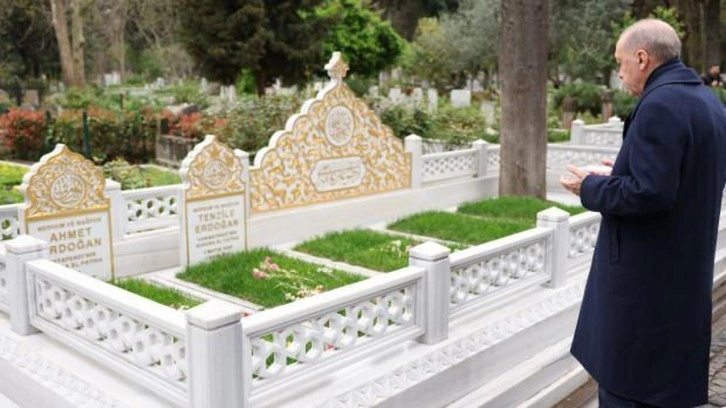 Erdoğan merhum babası Ahmet Erdoğan ve merhume annesi Tenzile Erdoğan'ın kabirlerini ziyaret edip dua etti.