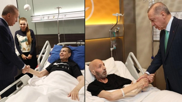 Cumhurbaşkanı Recep Tayyip Erdoğan, tedavi gören eski AK Parti Şanlıurfa Milletvekili Halil Özcan ile Türk Metal Sendikası Genel Başkanı Pevrul Kavlak'ı ziyaret etti.