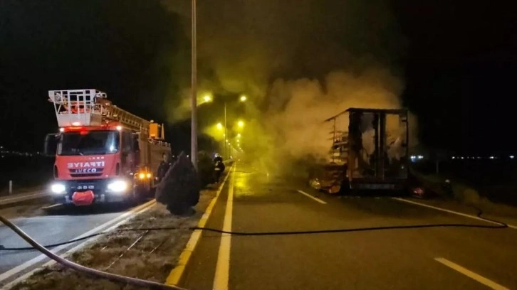 Yangın nedeniyle tır kullanılamaz hale geldi.