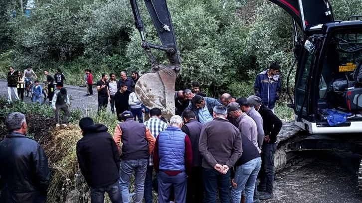 Heyelan nedeniyle bazı vatandaşlar araçlarında mahsur kaldı. Bir anda taşan dereden gelen görüntüler cep telefonu kamerasıyla kaydedildi.