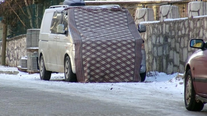 Kentte birçok sürücü, araçlarının camlarını buzdan korumak için battaniye ve kartonla önlem almaya çalıştı.