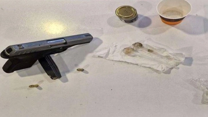 İş yerindeki aramada 11,79 gram sentetik uyuşturucu, ruhsatsız tabanca, hassas terazi, uyuşturucu kullanım aparatları ile 26 bin 80 lira para ele geçirildi; şüpheliler İ.Ö, M.Ç, ve L.Ş.A. gözaltına alındı.