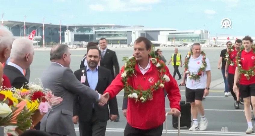 Avrupa Basketbol Şampiyonası’nda gümüş madalya kazanan milli sporcularımız İstanbul Havalimanı'nda uçaktan inerken Türk bayrakları ve çiçeklerle karşılandı.