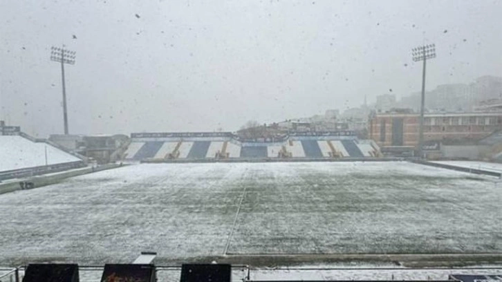 Ekipler karşılaşma öncesi zeminde kar temizleme çalışmalarını sürdürüyor.