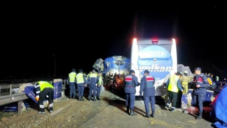 Kaza nedeniyle Edirne yönünde trafik oluştu. Ekipler kaza yapan otobüsle tırı kaldırmak için çalışma başlattı.