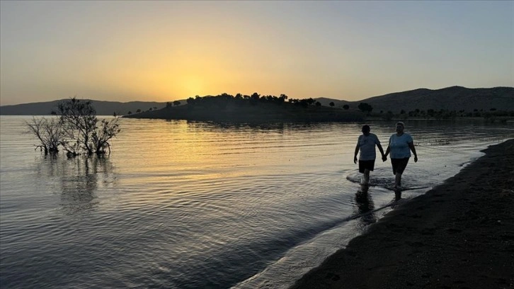 Doğa Anadolu Bölgesi'ndeki rotaları kapsamında Elazığ'ın tarihi, turistik yerleri ile doğa güzelliklerini gezen ve Hazar Gölü kıyısında kamp kuran Sönmez çifti, göl kıyısında gün batımını izledi.