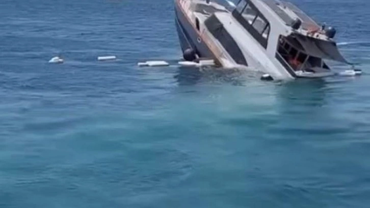 Sağlık kontrolünden geçirilen 8 kişinin herhangi bir sağlık sorunu olmadığı öğrenildi. Su alan teknenin battığı anlar cep telefonu kamerasına yansıdı.