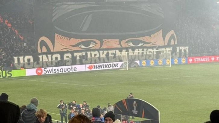 Bu mücadele öncesi Victoria Plzen taraftarları yaptıkları koreografide ‘Türklerle savaş olmalı’ yazılı pankart açtılar.