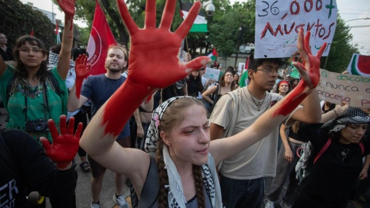Gösteriye katılanlar, İsrail'in Gazze'deki katliamlarına sessiz kalan ABD ve Avrupa ülkelerinin dünya kamuoyunu oyaladığını ileri sürerek Meksika hükümetinden Filistin'i devlet olarak tanımalarını istedi.