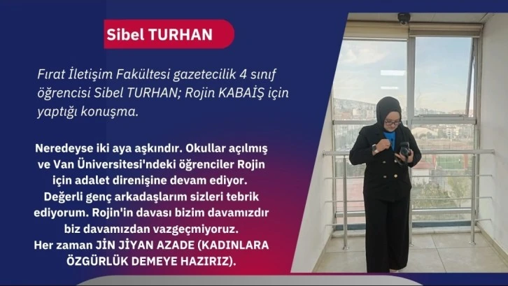 Fırat İletişim Fakültesi gazetecilik 4 sınıf öğrencisi Sibel TURHAN; Rojin KABAİŞ için yaptığı konuşma.