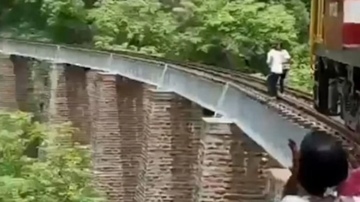 Yaklaşan trenden kurtulmak için çaresizce köprüden atladılar ve aşağıdaki vadiye düştüler.