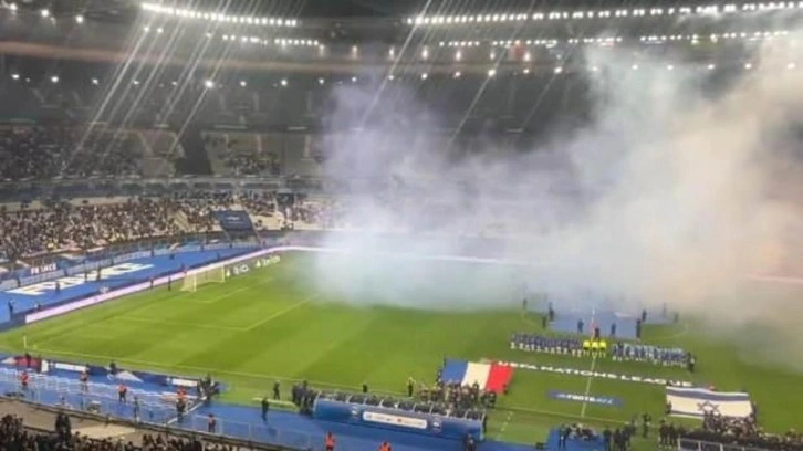 Stade de France'da oynanan karşılaşma öncesi İsrail'in Gazze işgali nedeniyle Fransız taraftarlardan rakip ülke marşına tepki geldi. Fransız taraftarlar, İsrail marşı anons edildiği sırada ıslıklarla tepki gösterdi.