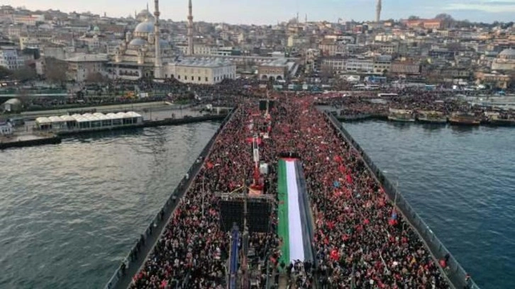 Namazın ardından katılımcıların Türkçe, Arapça ve İngilizce pankartlar taşıyarak Galata Köprüsü'ne doğru yürüyüşe başladığı ifade edildi.