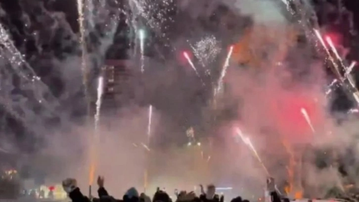 Taraftarların yaktığı havai fişekler gökyüzünü aydınlatırken, o anlar çevrede bulunanların cep telefonlarıyla kaydedildi.