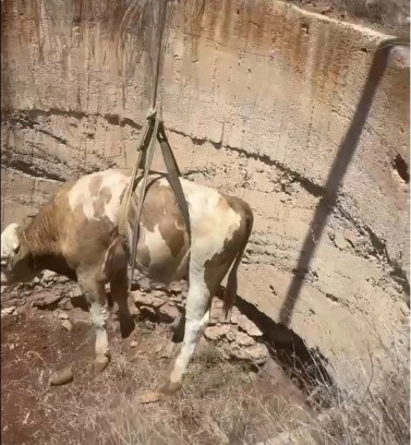 Gaziantep’in Oğuzeli ilçesine bağlı Çatalsu Mahallesi’nde, görme engelli bir dana su bulunmayan karaf çukuruna düştü. Dana sahibi Muhammed Şahbudak, durumu fark etmesi üzerine durumu 112 Acil Çağrı Merkezi’ne bildirdi. İhbar üzerine olay yerine itfaiye ekipleri sevk edildi.