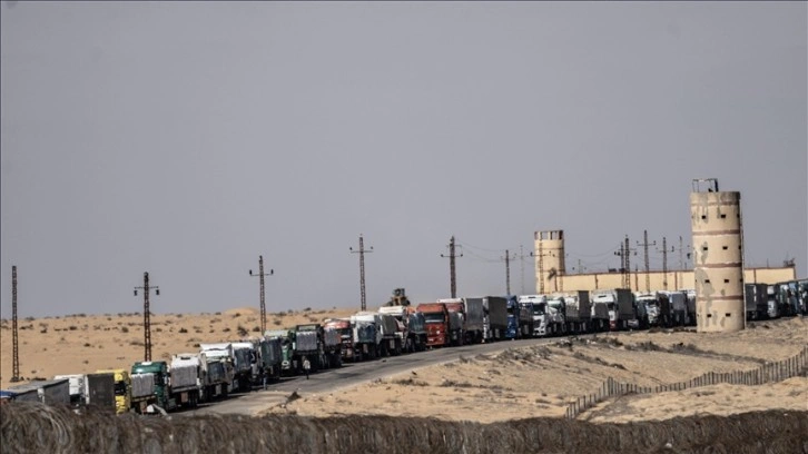 Yaklaşık 2,3 milyon Filistinlinin açlıkla mücadele ettiği Gazze'ye gidecek yardım ve ticari ürünleri taşıyan tırların bölgede yoğunluk oluşturduğu görüldü.