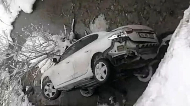 Yakup Urtaç'ın kullandığı 34 NS 1701 plakalı otomobil, yolun buzlanması ve kaygan zemin nedeniyle kontrolden çıkarak köprüden dereye uçtu.,