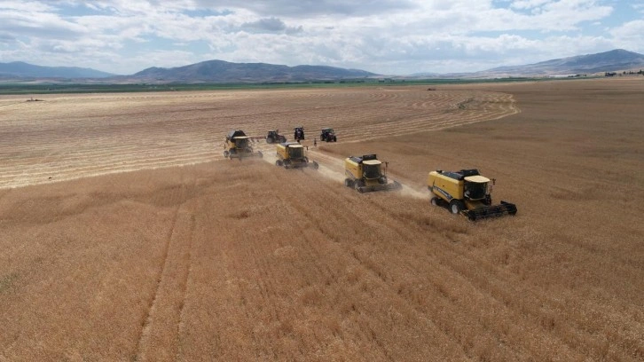 Tarım İşletmeleri Genel Müdürlüğüne (TİGEM) bağlı işletmenin verimli arazilerinde başlayan bu yılki hasatta yaklaşık 4 bin 500 ton buğday üretimi hedefleniyor. Geçen yıl Ekim ayında ekilip bu ay olgunlaşan başakların biçerdöverler ve iş makineleri kullanılarak hasat edildiği çalışma havadan dronla görüntülendi.