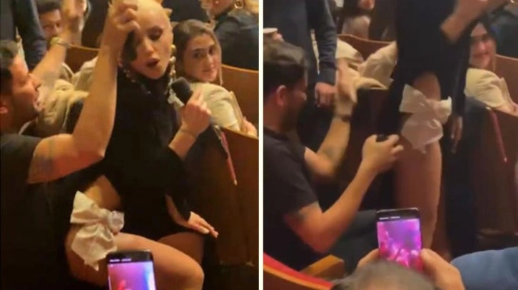 Yine Gülşen yine olay! Kucağına oturduğu seyirci, kalçasını tokatladı