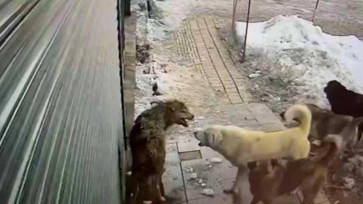 Yaşananlar saniye saniye kameralara yansırken, bir süre kavga eden köpekler ve kurt daha sonra gözden kayboldu.