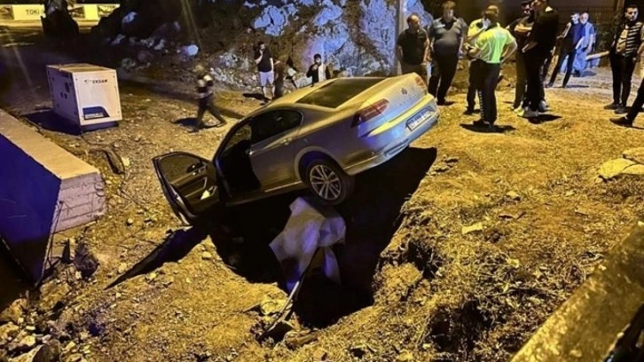 Gece saatlerinde sürücüsünün navigasyon üzerinden Arsuz ilçesine gitmek istediği otomobil, Pirireis Mahallesi'nde depremde hasar alan ve yıkımı yapılan bina arazisine uçtu.
