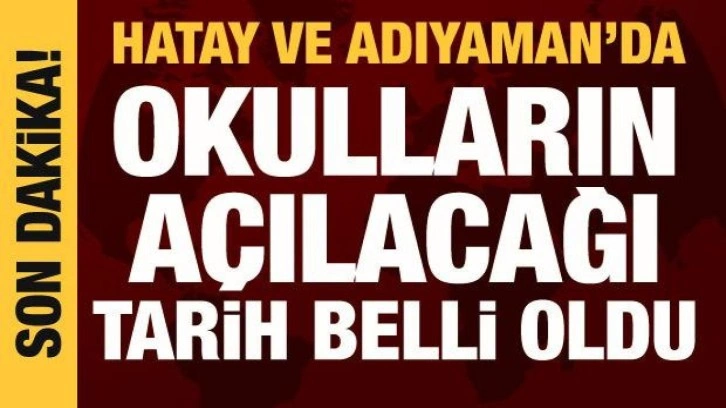 Hatay ve Adıyaman'da okullar 24 Nisan'da açılacak