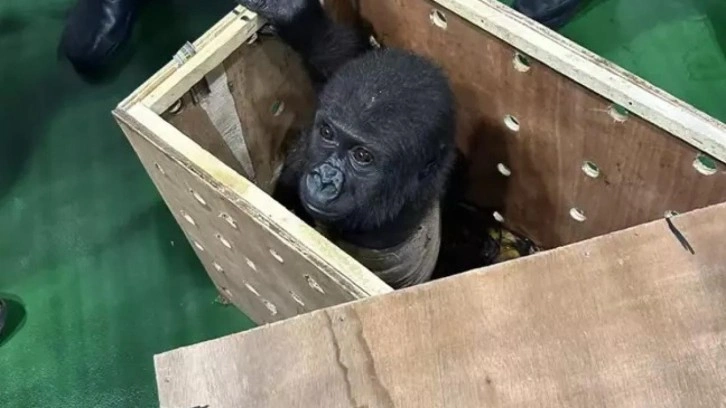 İstanbul Havalimanı'nda önceki gün Nijerya'dan gelen bir uçağın kargo bölümüne saklanan yavru goril bulunmuştu.