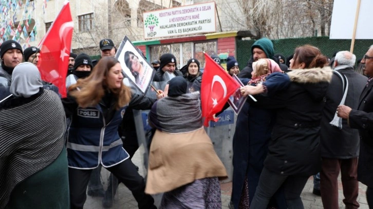 HDP İl Başkanlığı binasından da ailelerin sesini bastırmak için yüksek sesle müzik açıldı. Müzik sesine tepki gösteren aileler, "Kahrolsun PKK" sloganları atıp, içeri girmek istedi. Önlem alan polis ekipleri, buna izin vermedi.