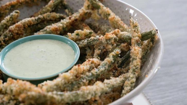 Yeşil fasulye mezesi, çıtır çıtır ve dip sos ile severek tüketilecek hem kolay hem de lezzetli bir meze tarifidir. Yeşil fasulye mezesi, düşük karbonhidratlı olduğu için diyet yapan kişiler de rahatlıkla tüketebilir. Yeşil fasulye mezesi, lezzeti ile çoğu yemeğin yanına yakışır. İçerisinde ekmek kırıntısı olmadığı için aynı zamanda glütensizde bir tariftir.