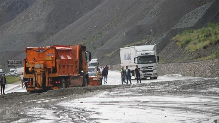 Kara yolunun 25. kilometresindeki heyelan, yolu ulaşıma kapattı.