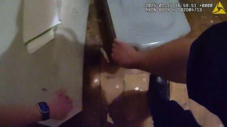 Vücut kamerasına yansıyan görüntülerde, ekiplerin eve girerek şüpheliyi bulma anları yer aldı. Polisten yapılan açıklamada, şüphelinin 41 yaşında olduğu ve gözaltına alındığı belirtildi.